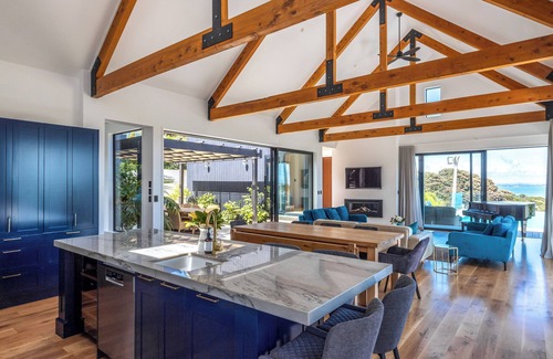 Esta casa de vacaciones de 7 dormitorios y 5 baños está ubicado en Isla Waiheke, una ubicación ideal para explorar los alrededores. A los amantes de la naturaleza y el aire libre les encantará estar a 5 minutos a pie de Te Whau Bay y a 6min en coche de Mt William Walkway. Estarás a 7min en coche de Wild on Waiheke y a 8min también en coche de Viñedo Tantalus Estate.