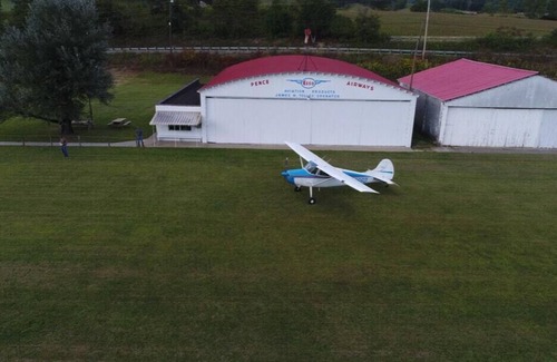 Fly In Glamping Getaway at the Hinton-Alderson Airport (WV77) overlooking the Greenbrier River. Cub, Stearman and Skyhawk sites are available