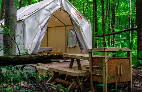 Be sure to bring your own food, firewood and bedding. There is no electricity available at your Tentrr site. Anything you pack in, you must pack out. All trash MUST be deposited in a designated receptacle at the end of your stay. If you do not follow this rule, you will be charged a cleaning fee. Please beware that there are rattlesnakes, bears and other forest dwellers in this area. They are important members of the natural community, so we ask that you give them distance and respect for the safety of all. Have a wonderful stay!