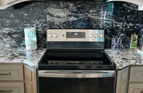 Este alojamiento de 3 dormitorios y 3 baños cuenta con una zona para barbacoas y aire acondicionado. También puedes utilizar la bañera de hidromasaje, además de otras comodidades como toallas, champú y jabón. La cocina está equipada con horno, placa de cocina y frigorífico, además de cafetera y tetera, máquina de hielo y microondas.