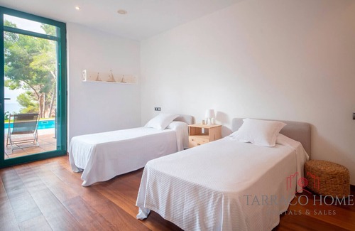 Don't miss the opportunity to stay in this wonderful luxury villa with pool in the exclusive area of Tamarit! As soon as you enter, one can see the large open space that characterizes the villa, as well as the large windows that offer pleasant sea views and allow plenty of light throughout the day. The kitchen, coquettish and open, opens directly through an interior balcony to the living room, which is just a couple of steps down from the entrance.