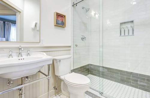 Your private King Suite is located on the main level of the Cottage. The room features a plush King bed with luxury linens and a smart TV for your entertainment. The attached sitting room has a queen sleeper sofa. The private en-suite bathroom is equipped with a shower and a hairdryer for your convenience.