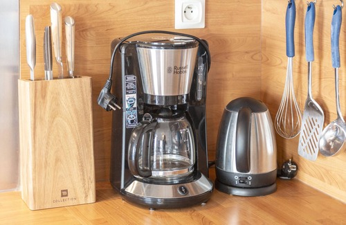- Cocina totalmente equipada (frigorífico, lavavajillas, horno, microondas, placa de inducción, cafetera de filtro, cafetera de cápsulas, hervidor, tostadora, lavadora) y mesa para 4