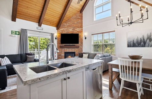 Relaxation awaits at 241-171 Snowbridge Way! An immaculate, newly renovated getaway escape has been curated for you with every detail in mind. This 2-story 4 BDR, 3 Bath unit boasts an open concept, chalet-style great room with vaulted ceilings and a direct view of the Blue Mountains. Expansive seating surrounds a brick gas fireplace and 65inch TV with surround sound system. Guests can also enjoy complimentary access to the Snowbridge pool, as well as free shuttle service to the village!