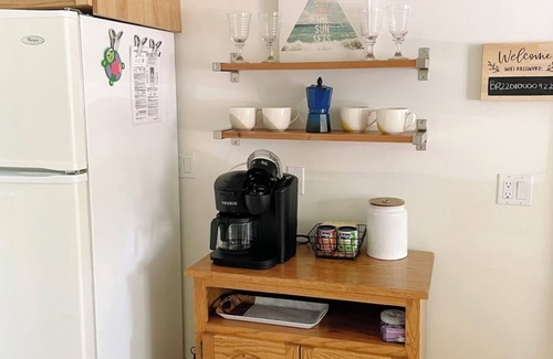 Step inside and you’ll immediately feel the warmth and character of this thoughtfully decorated space. The Eleanor embraces a beautiful aesthetic, whimsical style, filled with coastal touches and a bright, welcoming atmosphere. Two comfortable bedrooms each feature queen beds dressed with soft linens, making the cottage ideal for a small family or two couples traveling together. The living area is inviting and warming, designed for relaxation after a day by the lake, while the fully equipped kitchen makes it easy to prepare meals at home. A brand new three-piece bathroom, complete with a stand up shower, adds convenience, and the space has been thoughtfully arranged to ensure comfort throughout your stay.