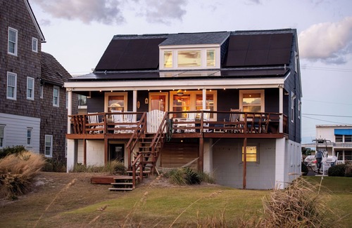 The Exum Beach Cottage - ¡Venga a relajarse en nuestra casa rústica frente al mar! Nuestra encantadora casa de playa está equipada con una enorme terraza con vistas de 180 grados a la playa. La cabaña se encuentra al final de una calle sin salida, a muy poca distancia a pie del muelle pesquero de Oceanana. Esta casa rural de cinco dormitorios y tres baños completos tiene capacidad para 18 personas. También tiene una ducha exterior. El 3er piso es una suite principal con capacidad para 6 personas e incluye un pequeño espacio de oficina. Nuestra casa de campo cuenta con nostálgicas paredes de madera de pino, calefacción central / aire, agua suave (agua potable), TV por cable, reproductor de DVD, Apple TV (piso principal, sótano y habitación del tercer piso), Wi-Fi rápido, equipo de música equipado con Bluetooth, lavadora / Secador, y un clásico estilo de construcción de los años 50. La casa tiene un amplio aparcamiento para una gran familia o grupo de amigos. Esta casa de vacaciones es ideal para una escapada de fin de semana o un retiro de una semana de duración para los huéspedes más interesados en desconectarse de las pantallas y disfrutar el tiempo de estar juntos en el porche, o con los dedos enterrados en la arena y las olas rompiendo en sus pies. El televisor en el piso principal es intencionalmente pequeño, alentando a nuestros huéspedes a recoger un libro o un juego de mesa e interactuar entre sí. Si bien la casa está equipada con WiFi veloz y televisión por cable, esperamos que nuestros huéspedes encuentren tiempo para desconectarse de las distracciones de las computadoras, los teléfonos móviles y la televisión, y disfruten de vacaciones clásicas en el pasado, como surfeo, caminatas por la playa, cócteles en el cubierta, y viendo la puesta de sol. Durante los meses de verano, la cabaña está disponible para reservas de una sola semana, que comienzan y terminan un domingo. Cuando realice la reserva, indique el número de camas para las que desea ropa de cama y ajustaremos la tarifa de la ropa en consecuencia. El costo de ropa de cama y toallas de baño es de $ 25 / por cama. La casa tiene 12 camas, 1 rey, 4 reinas, 1 doble y 6 gemelos.