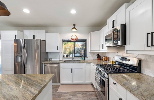 Este alojamiento de 3 dormitorios y 2 baños cuenta con una sala de estar, una zona para barbacoas, chimenea y aire acondicionado. El cuarto de baño incluye un secador de pelo, toallas y papel higiénico. La cocina está equipada con horno, placa de cocina y frigorífico, además de cafetera y tetera, hervidor eléctrico y máquina de hielo. Y gracias a la lavadora y la secadora, podrás viajar con poco equipaje.