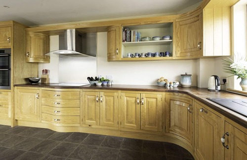 Una cocina artesanal única con encimeras de nogal y exquisitos detalles. Hay una nevera-congelador, horno, placa eléctrica, microondas, cafetera, tostadora y vajilla artesanal Dingle. Hay un cuarto de servicio independiente con lavadora y almacenamiento adicional. La cocina conduce a un comedor separado con puertas francesas que conducen al jardín y al banco de picnic. El comedor contemporáneo también está hecho a mano aquí en la península.