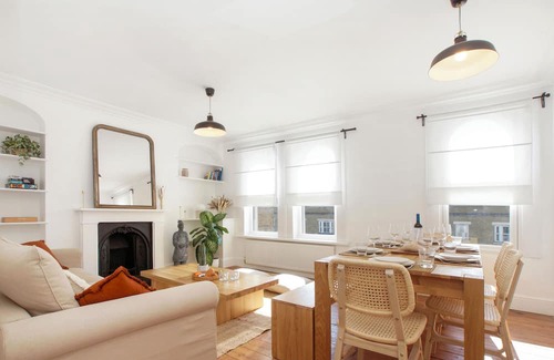 Discover luxury living on Grove Road, Mile End! This elegant 3-bed flat offers spacious bedrooms with plush beds and premium linens, an open-plan living area, and a fully-equipped modern kitchen. Relax in spa-like bathrooms with rainfall showers and designer toiletries. Perfectly located near Mile End Park, Roman Road Market, and transport links. Just a few minutes away from Mile End Station, this flat is ideal for families, groups, or travellers. Book now and enjoy East London's finest retreat!