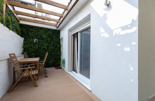 Relájate en el jardín o tómate algo en el porche o patio de esta casa de vacaciones de 60 m². Para cambiar un poco, entra y disfruta del wifi gratis y de la televisión.