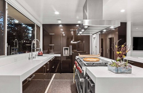 Esta casa de vacaciones de 5 dormitorios y 6 baños se encuentra en Beverly Hills y es una ubicación fantástica desde la que recorrer los alrededores. A los amantes de la naturaleza y el aire libre les encantará estar a 44min en coche de Playa de Venice y a 37min de Playa de Santa Monica. Puedes conducir 21min hasta Avenida de Hollywood o 21min hasta Centro comercial The Grove.