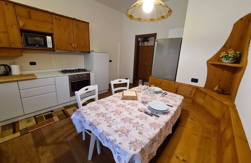 The apartment, located on the ground floor, consists of a large and cozy kitchen with gas stove, oven, microwave, dishwasher, coffee machine, kettle, and smart TV. From the kitchen, you can access the small balcony that can be closed with curtains for maximum privacy. The living area also includes a large and bright living room with a sofa bed, TV, and a workstation with an ergonomic chair. The sleeping area consists of a bedroom with a double bed, bedside tables, chest of drawers, and a large wardrobe. In the bathroom, there is a multifunction shower and a hairdryer. For leisure and work, the apartment has a fiber optic internet connection with WiFi. For any heating or cooling needs, there is an air conditioner with an internal split that guests can adjust as they wish. All windows have double glazing. For the security of our guests armored door and security grates.