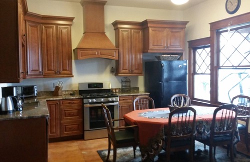 granero de estilo antiguo ferrocarril Boarding House y Hotel convertidos en apartamentos Arriba, Abajo vacaciones. A una cuadra de Main Street en Three Forks Montana, a 28 minutos de Bozeman Montana, a 90 millas del Parque Nacional Yellowstone. A una cuadra de la histórica Sacajawea hotel con 5 estrellas y Comedor, bandas y baile los viernes y sábados por la noche. Pesca Blue Ribbon abunda en el Jefferson, Madison y Gallatin River convergen para formar el parque de estado del río Missouri en sus nacientes. También con algunas millas es Lewis y Clark Cavernas. Uno de los dormitorios tiene una cama matrimonial y un baño personal de 3/4 con una ducha con azulejos neo ángulo, lavabo y pedestal lav, el otro dormitorio tiene una cama matrimonial con baño completo compartido con bañera y ducha de 6 pies de largo y pedestal baja por el pasillo. Techos de 10 pies de altura, sala de estar grande con futón plegable tamaño queen y un sofá podría usarse para dormir adicional de una persona, sofá de dos plazas y mecedora TV de pantalla plana de 42 "TV directa HBO y otros canales. Beautiful nuevos armarios de cocina, encimeras de granito, mesa de comedor para seis. porche frontal de la cuarta temporada con el área y zona de gimnasio sentado en otras pesas amo de la escalera lateral y la máquina de peso del cable. Con monedas lavadora y secadora en el área común, junto con el acceso a la cubierta de madera y barbacoa parrilla roja fuera común. Hola velocidad de snooker, Internet ilimitado