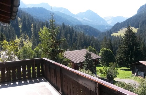 El balcón en orientación suroeste ofrece una maravillosa vista de las montañas circundantes, que lo invita en el verano a un maravilloso desayuno en el balcón (mesa y 4 sillas disponibles).