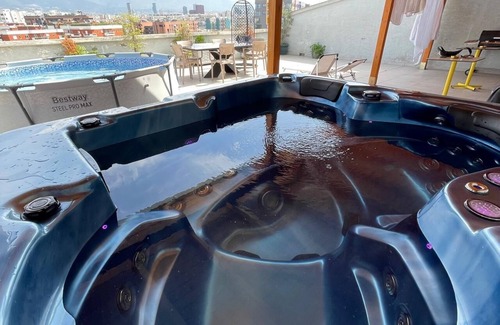 Soak in your private rooftop hot tub and enjoy sweeping skyline and mountain views from this spacious 3-bedroom rooftop apartment in Tirana. With a plunge pool, large terrace, BBQ, and shaded pergola lounge, it’s ideal for family holidays, group trips, or a relaxed city getaway. Inside, you’ll find an open-plan living area, a fully equipped kitchen, and 3 comfortable bedrooms (2 doubles, 1 twin) with 2 bathrooms. Free secure underground parking, AC, fast Wi-Fi, and a washer/dryer make your stay convenient and stress-free. Whether you’re gathering for sunset dinners on the terrace or exploring Tirana’s vibrant streets, this rooftop apartment offers the perfect mix of comfort and city adventure.