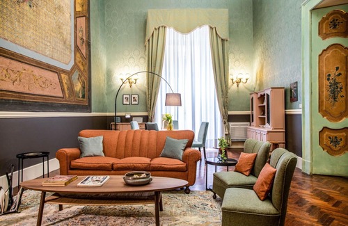Suite de lujo Corte es un hallazgo raro, con su decoración y mobiliario neoclásico, murales y antigüedades, y se puede comparar a una estancia en un museo barroco.