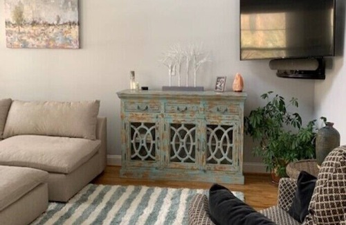 Casa adosada de dos pisos, recientemente renovada, con cama principal y baño en el nivel inferior. Todos los muebles nuevos y acabados y electrodomésticos de primera línea. En una hermosa zona de Greensboro, conveniente para el centro de la ciudad, parques, tiendas, centros deportivos, universidades, el coliseo, campos recreativos y hospitales. Bastante, seguro, encantador culde sac. Barrio con todas las comodidades del hogar. El propietario puede estar en su casa en una suite principal separada con puerta de entrada exterior. Los gatos, la mayoría de los gatos encantadores, están en la premisa.