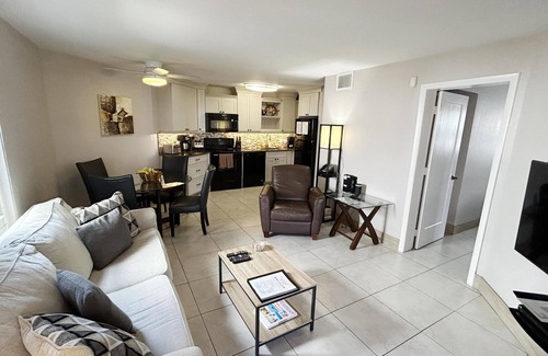 El nuevo y renovado Cayman Reef Resort Residential Condo Suite # 1 es un hermoso alquiler de vacaciones en Seven Mile Beach en las Islas Caimán. Los acabados y comodidades de primera línea seguramente satisfarán a todos los huéspedes. Le encantará su estadía en este fantástico condominio de vacaciones. El alquiler de vacaciones en Gran Caimán cuenta con una habitación con una cama king size de espuma viscoelástica y un baño accesible desde la habitación, un sofá desplegable en la sala de estar con capacidad para dos huéspedes adicionales. Este condominio está situado en el corazón de todo, entre el Ritz y el Marriott, estará a una corta distancia a pie de dos supermercados, restaurantes y las nuevas tiendas Camana Bay.