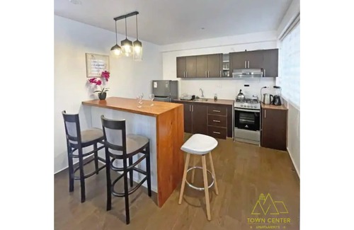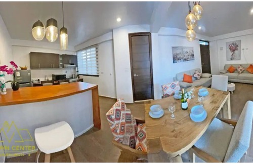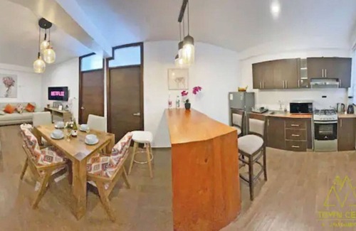 Disfruta de una experiencia elegante en este departamento totalmente céntrico y nuevo. Ubicado en el cuarto piso muy cerca de todo (mercados, restaurantes, tiendas de todo tipo, terminal de buses,etc). Construido en 65 metros cuadrados aprox. y con buena distribución de ambientes: dos dormitorios, comedor, cocina, baño y lavandería. Ideal para estadías cortas y largas, contamos con WiFi e internet cableado de alta velocidad ideal para nómadas digitales y viajeros.