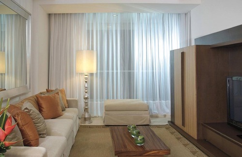 Esta hermosa sala de estar es una villa de dos dormitorios, dos baños y medio con dos camas king-size, dos bañeras de hidromasaje, amplia terraza con una piscina, terraza privada separada, cocina gourmet, dos salas de estar con sofás cama y cuatro televisores LCD. Tiene capacidad para 8 adultos y 2 niños.