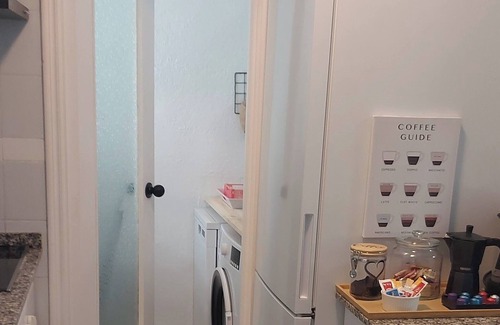 Cocina completa con lavavajillas, lavadora, horno, microondas.