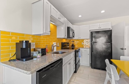 Prepara una comida casera en la cocina, equipada con horno, placa de cocina y frigorífico, además de cafetera y tetera, microondas y utensilios de cocina. Conéctate al wifi, o relájate frente a televisión. El cuarto de baño incluye un secador de pelo y toallas. Y como podrás aprovechar la lavadora y la secadora, no te hará falta llevar mucho equipaje. Otras comodidades de este alojamiento de 2 dormitorios y 1 baño incluyen ropa de cama, una tabla de planchar, aire acondicionado y calefacción.