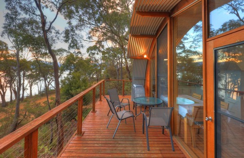 Three Trees Retreat fue finalista en la categoría ecológica Stayz Holiday Rental Awards 2014. Una casa elegante y contemporánea en un entorno boscoso, a pocos pasos de una cala de arena protegida en la costa del canal D'Entrecasteaux.