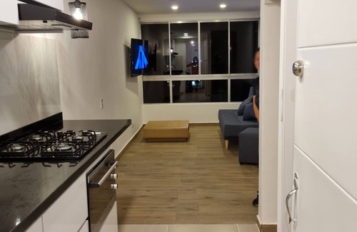 Un lugar comodo para descansar y disfrutar de la estadia en Bogotá. Cuenta con lavadora, secadora, tv smart tv. Wifi. Cocina integral. Sofa cama, utensilios de cocina, nevera, ollas, platos. Domicilios