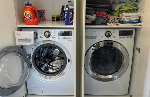This cozy two-story home has a warm, easygoing feel and a layout that works well for small families, couples, or traveling professionals. Both bedrooms are upstairs, each with a queen-sized bed and plenty of natural light. One of the rooms also has a fun twin loft bed, perfect if you're traveling with a kid or need a flexible sleep setup. There's a little hallway nook with a desk upstairs, ideal for working remotely or catching up on emails.