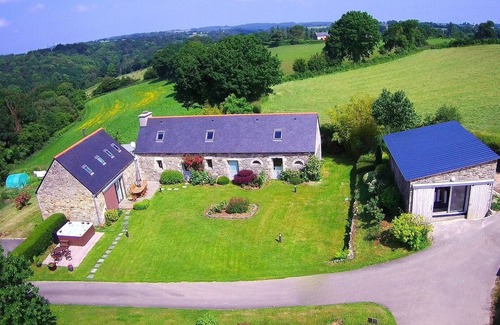 Este antiguo granero se encuentra en un entorno excepcional, tranquilo, con impresionantes vistas del valle y los primeros altorrelieves de las montañas de Arrée. Se encuentra a 15 minutos de la playa ya 5 minutos de Guerlesquin, una pequeña ciudad de carácter con todos los servicios y tiendas. Los pueblos de los alrededores Ponthou y Plouegat Moysan (2 minutos) ofrecen tiendas locales. Lesleac'h se encuentra al pie del GR 34 y GR 380 y las posibilidades de senderismo son muy amplias.