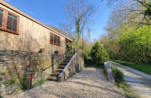 Nestled in a lovely rural spot by the Afon Barddu River, this cosy single-storey studio lodge makes a peaceful countryside retreat for couples and their four-legged friends. It’s tucked away in the tranquil hamlet of Cwm Morgan, where the only soundtrack is birdsong and gently flowing water. If you're in the mood for a pint or a hearty pub meal, head to Abercych (5 miles) or the bustling market town of Newcastle Emlyn (4.5 miles), where you’ll find plenty of pubs, cafes and restaurants. The nearby Cenarth Falls (6 miles) makes a great dog-walking and picnic spot. For a full day out, explore the coastal town of Cardigan (12.5 miles) with its shops, eateries, theatre and castle. Sunseekers and sea lovers can also make a trip to Poppit Sands (16 miles) for a salty breeze and sandy toes. Ten external steps lead you up to the wooden lodge’s enclosed decked terrace, where you can step through the French doors into a bright, cheerful studio layout with colourful artwork and a breezy vibe. The lounge area features a comfortable sofa and wall-mounted Smart TV, while the L-shaped kitchen acts as a natural divider and includes a compact dining table for two. At the rear, a king-size bed sits behind a stylish screen for a sense of privacy. The en-suite shower room completes the space with a cubicle shower, basin and WC. Out on the terrace, which is protected from the rain by a wooden canopy, you’ll have outdoor seating perfectly positioned for coffee with a view – and the sound of the river as your morning playlist. There is private parking for one car.