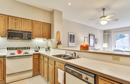 Aunque es un dormitorio tradicional con una cama doble, también hay espacio disponible para dos más en el sofá cama del salón. El comedor tiene capacidad para cuatro con barra de asientos en la cocina para dos. Equipado con TV de pantalla plana, cable y Blu Ray, HDTV y WiFi gratuito de alta velocidad, el condominio también cuenta con una entrada cubierta para cuando arroja nieve, cocina completa y chimenea de leña. No se permiten mascotas.