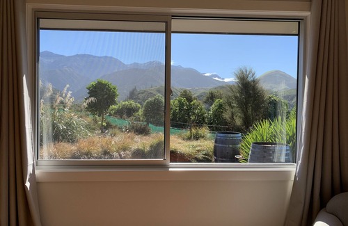 Kora's View está situado en un entorno pintoresco. Esta moderna casa de 3 dormitorios y dos baños, ubicada en 5 acres, domina el río Hapuku, el pico Manakau y el océano Pacífico. A solo 10 minutos en automóvil al norte de Kaikoura Town Ship. Queremos compartir nuestra impresionante propiedad que hemos llamado hogar rodeada de árboles Kanuka. Escucha las canciones del Manu local (pájaros). Un rápido viaje hacia el norte hasta una playa de surf superior. Saborea un vaso de vino en la amplia terraza que domina el mar, las montañas y el río Hapuku.
