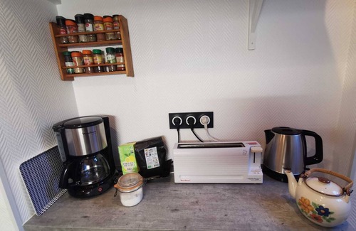 → HORNO y MICRO-ONDE así como placa de cocina para jugar a los chefs estrella y disfrutar de la gastronomía alsaciana. Se dispone de especias, aceite, vinagre y azúcar.