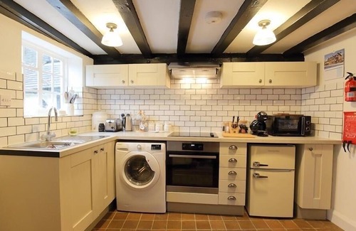 One Masons 'Court es una casa histórica ubicada en Stratford-upon-Avon, Warwickshire. Se remonta al siglo XV y se ha presentado meticulosamente con muebles elegantes que complementan las increíbles características de la época para convertirla en una casa de vacaciones cálida y acogedora. Cuenta con sala de estar con chimenea, cocina equipada con zona de comedor. La planta superior tiene un dormitorio doble y un dormitorio con dos camas individuales con baño y aseo separados. Hay un pequeño patio compartido fuera de la propiedad. Estacionamiento fuera de la carretera está disponible para un automóvil a la vuelta de la esquina de la casa. One Masons 'Court es perfecto para familias pequeñas.
