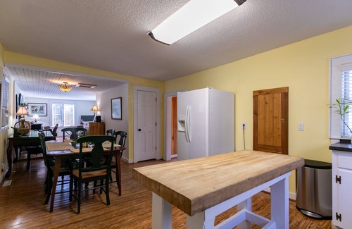El nivel principal de la casa tiene un baño completo, una cocina bien ventilada con una isla con tapa de madera y una mesa de comedor para seis. Ingrese a la sala de estar y relájese en los lujosos muebles de cuero y vea su programa de TV favorito en la HDTV. Una unidad de aire acondicionado de ventana sirve tanto a las áreas de comedor como de sala de estar para mantenerlo cómodo en todo momento, y en los meses más fríos, manténgase caliente con la acogedora estufa de gas.