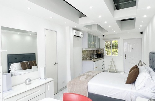 Suite tipo loft con entrada independiente, en exclusiva zona de caracas, recién remodelado, con desayunador en la terraza, un baño, Wifi, aparcamiento, se admiten mascotas, escritorio de trabajo, kitchenette, muy cómodo para parejas.
