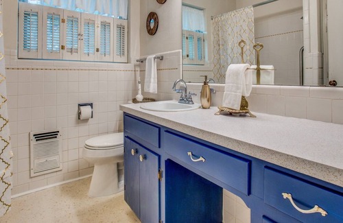 La casa de esta década de 1960 ha sido cuidadosamente preservada para mantener su carácter original. Comprado en 2019 por el propietario que vivió allí durante más de 50 años, los planes para modernizarse y actualizarse cambiaron rápidamente cuando nos dimos cuenta de cuán maravillosamente se había cuidado la casa. Los pisos, paneles, encimeras y azulejos del baño originales estaban en perfectas condiciones. Decidimos dejarlo como está y ejecutar el tema de los años 60 mientras brindamos las comodidades modernas. ¡Esperamos que disfrutes retrocediendo en el tiempo a los años 60!