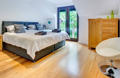 - Habitaciones - planta baja: cocina abierta de planta abierta y sala de estar, dormitorio con cama king / twin. Arriba: dos habitaciones super king / twin (una con cuna contigua / sala de juegos), baño con bañera, ducha de hidromasaje, inodoro y lavabo.