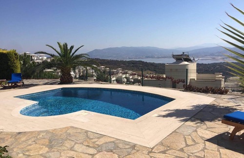 Ofreciendo increíbles vistas, es una hermosa villa de 4 dormitorios con piscina privada en Bogazici, que ha sido cuidadosamente atendida por los propietarios como la segunda casa por 10 años, y se ofrece en alquiler por primera vez en esta temporada. El espacioso alojamiento está situado en una gran parcela dentro del popular resort Turquoise en Bogazici, a pocos kilómetros de la hermosa localidad de Bodrum. Consta de 4 dormitorios, 3 baños, aire acondicionado, banda ancha súper rápida, un jardín bien cuidado, una piscina al aire libre de temporada, un gimnasio, un bar y una zona de playa privada. Esta villa le ofrece la oportunidad de disfrutar de unas vacaciones familiares de lujo para una fracción del precio que normalmente esperaría pagar por un alojamiento de esta calidad. Hay una gran piscina en el lugar, con toboganes para los niños, y los huéspedes pueden disfrutar del restaurante del hotel, con entretenimiento en vivo, o dar un corto paseo a varios bares y restaurantes cercanos.