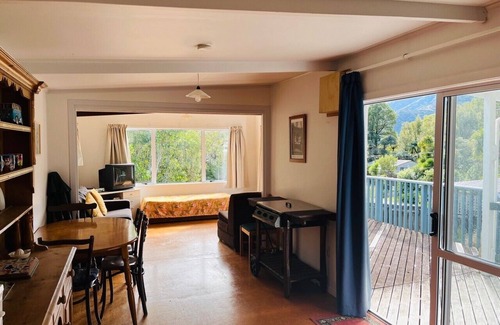 Ven y disfruta del encanto de Sandy Bay en Kenepuru Sounds. El bach en 21 Sandy Bay Road es una de varias casas de vacaciones en la bahía ubicada en el bosque nativo. Se puede acceder a la propiedad por carretera sellada desde Linkwater, que está en Picton hasta Havelock Road (Queen Charlotte Drive). Está aproximadamente a una hora en coche del desvío de Kenepuru Road en Linkwater