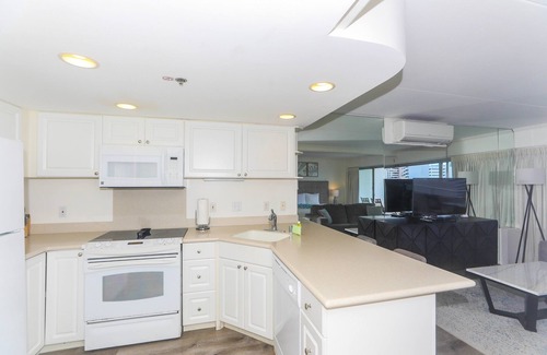 1 dormitorio de lujo con vistas a la ciudad en el piso 16! Esta unidad actualizada en el icónico Ilikai es amplia, cerca de la línea de autobús, tiendas, restaurantes, actividades, la mundialmente famosa playa de Waikiki y mucho más. El Ilikai es bien conocido por ser el telón de fondo del programa de televisión Hawaii Five-0 original.