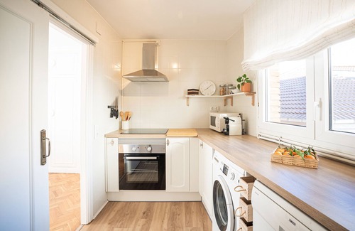 The apartment is located on the third floor of a four-storey building with no elevator. Both streets surrounding the building are pedestrian, making it very quiet. There is free parking on the streets near the accommodation. The Plaza de la Constitución, the Monastery, and all kinds of shops are less than a 5-minute walk away.