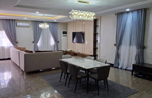 Located in Abuja, this 4-bedroom, 5-bathroom vacation home lets you experience it all. Fans of nature and the outdoors will love being 11 minutes by car from Millennium Park and 14 minutes from Jabi Lake Park. You'll easily make the 9-minute drive to International Conference Centre or the 8-minute drive to Federal Secretariat.