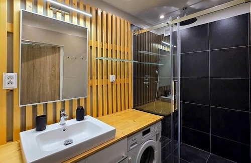 A modern, air-conditioned apartment with 2 separate rooms in the heart of Banská Bystrica. It offers stylish accommodation suitable for families and groups of friends. It features a fully equipped kitchen, bathroom with shower and washing machine, Smart TV, Wi-Fi, and free parking. The city center and all amenities are within walking distance.