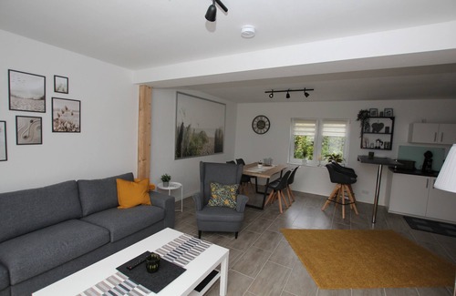 La cocina está equipada con horno, placa de cocina y frigorífico, además de hervidor eléctrico, microondas y utensilios de cocina. El cuarto de baño incluye un secador de pelo, toallas y papel higiénico. Otras comodidades de este alojamiento de 1 dormitorio y 1 baño incluyen una sala de estar, ropa de cama, una tabla de planchar y calefacción.