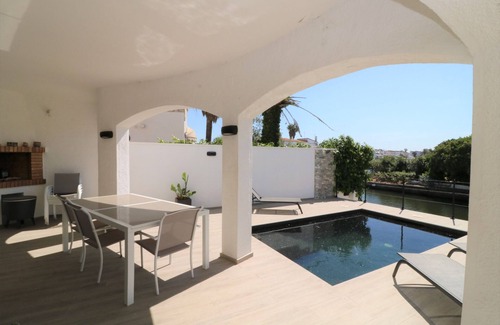 Preciosa villa con amarre privée y piscina en recinto privado en Empuriabrava, 4 dormitorios, capacidad 8 personas.
