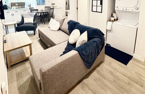 Este alojamiento de 2 dormitorios y 1 baño cuenta con una sala de estar, un comedor, aire acondicionado y escritorio. El cuarto de baño incluye un secador de pelo, toallas y papel higiénico. Prepara una comida casera en la cocina, equipada con horno, placa de cocina y frigorífico, además de cafetera y tetera, hervidor eléctrico y máquina de hielo. Y como podrás aprovechar la lavadora y la secadora, no te hará falta llevar mucho equipaje.