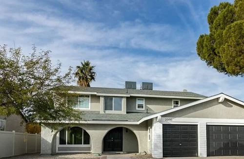 Fully remodeled 4BR/3BA furnished home with a private pool, relaxing hot tub, and a spacious backyard perfect for entertaining. Enjoy a covered patio, BBQ, and game room with pool table and large flat-screen TVs in every room. Ideal for corporate stays or extended vacations. Includes garage parking, linens, and a fully stocked kitchen. Pet-friendly with conditions. Live in comfort and style in the heart of Las Vegas!