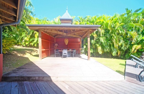 Tiene una piscina infinita, una terraza que extiende el hogar. Debajo de su carbet puedes pasar un buen rato.